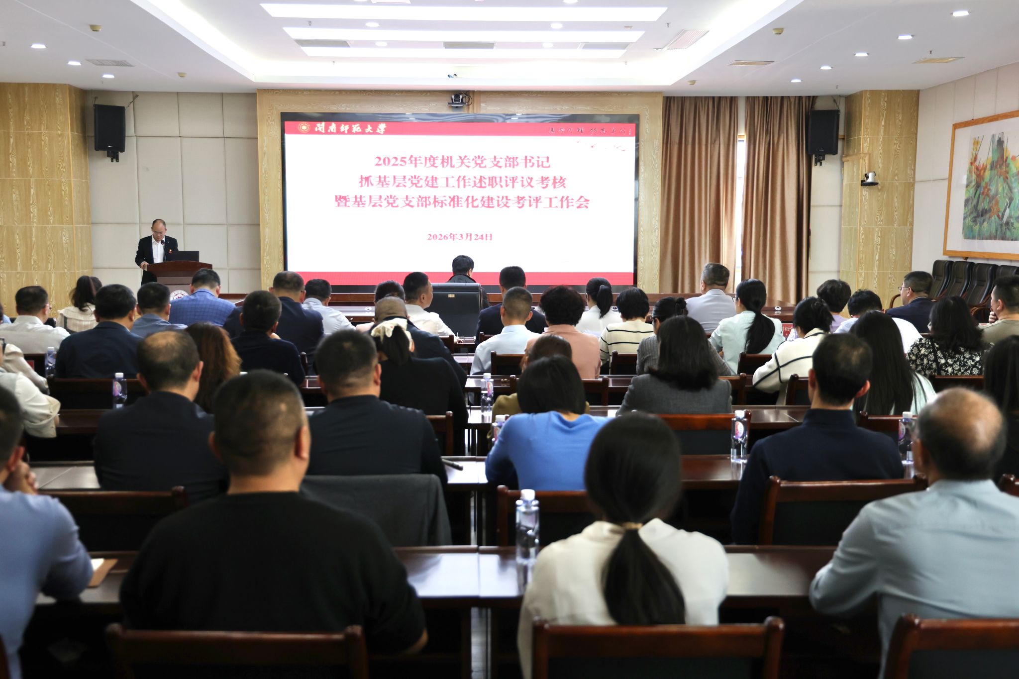 3月24日下午,机关党委召开2025年度机关党支部书记抓基层党建工作述职评议考核暨基层党支部标准化建设考评工作会。校党委副书记、机关党委书记林致远出席会议并讲话。机关党委副书记李常主持会议。