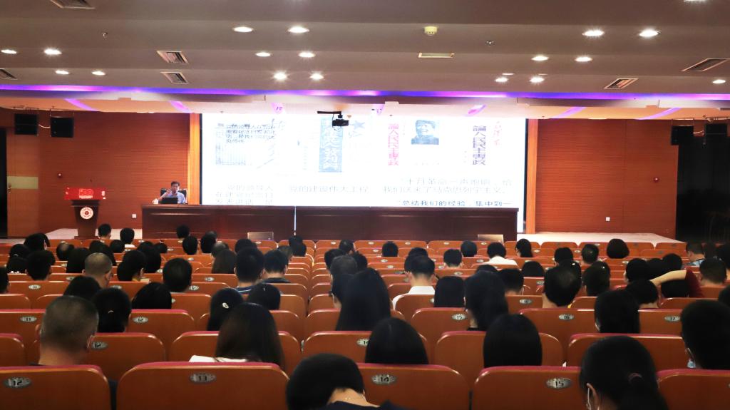 10月21日下午,机关党委邀请马克思主义学院院长陈再生教授为机关全体党员作题为《学习“七一”重要讲话精神感悟伟大建党精神内涵》的报告,组织部部长、机关党委副书记陈超主持报告会。