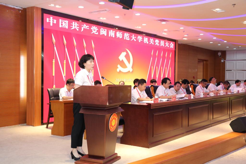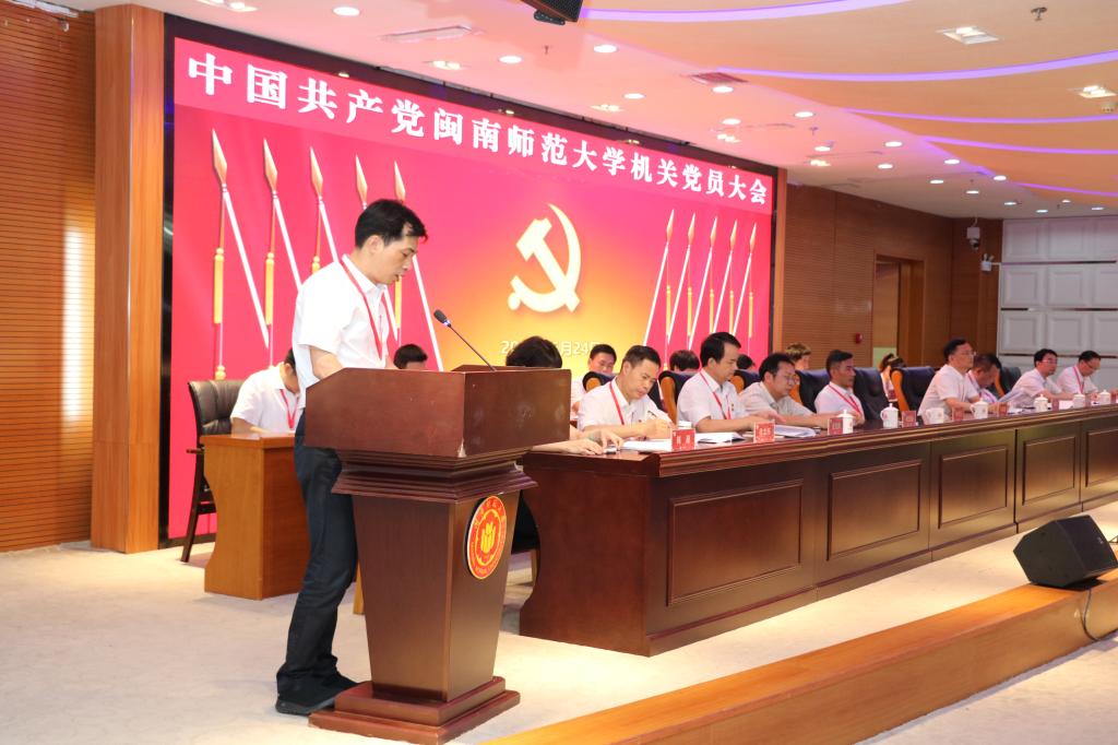 组织部部长、机关党委副书记陈超代表中共tyc41183太阳成集团机关委员会向大会作题为《赓续光荣传统,打造模范机关,奋力谱写学校机关党建高质量发展新篇章》的工作报告。报告全面回顾总结了2017年tyc41183太阳成集团机关一、二党委成立四年来取得的成绩和经验,客观分析了学校机关党的建设存在的问题,全面阐述了学校机关党委工作面临的新机遇新挑战,明确了未来五年的奋斗目标。陈超在报告中指出,在校党委的坚强领导下,机关一、二党委携手并进,团结带领全校22个机关党支部和机关全体党员干部赓续光荣传统、践行优良作风、牢记初心使命、勇于担当作为,引领推动机关党建和业务工作融合发展,为新闽师建设作出了积极重要的贡献。过去四年来的工作成绩来之不易,这是校党委坚强正确领导的结果,是机关一、二党委班子全体成员同心同德砥砺奋进的结果,是机关全体党员干部勇于担当善于作为的结果,是全校广大师生员工积极配合大力支持的结果。今后五年,机关党委将坚持以习近平新时代中国特色社会主义思想为指引,全面贯彻落实新时代机关党建和高校党建工作新要求新任务,以自觉做党光荣传统和优良作风的忠实传人和模范机关为初心使命,以当好政治能力过硬、思想素质过硬、组织功能过硬、作风能力过硬、纪律执行过硬的表率为目标方向,以服务发展、服务决策、服务落实为工作主线,着力建设具有tyc41183太阳成集团特色的模范政治机关、学习标杆机关、先进活力机关、优质服务机关、清正廉洁机关。