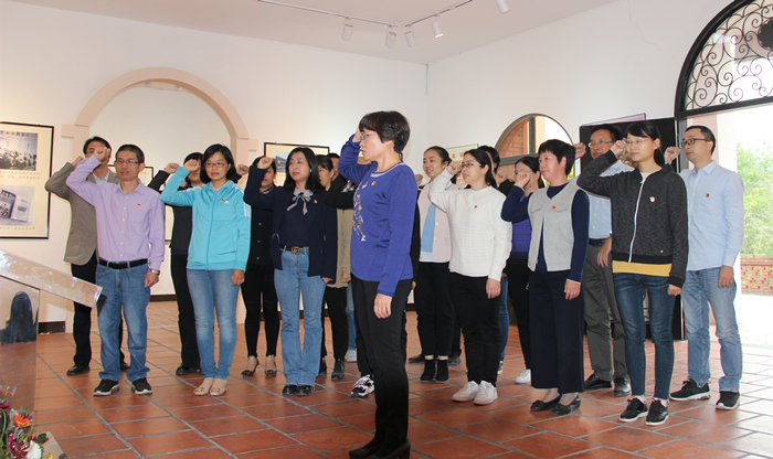 在李林事迹陈列馆,党员同志们首先在支部书记欧阳红红带领下重温了入党誓词,接着,党员一行在讲解员的带领下,一边聆听李林生前事迹介绍一边参观,一幅幅照片,一件件实物,生动展现了李林烈士为中国革命献出宝贵青春的光辉历程和强烈的爱国主义的情怀。