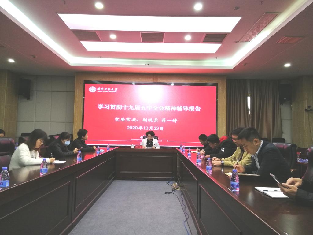 12月23日下午,为深刻领会党的十九届五中全会的全局性历史性意义,校党委常委、副校长蒋一婷作了关于学习贯彻十九届五中全会精神的辅导报告。财务处党支部全体党员、学校办公室、社会合作处、校工会、继续教育学院科级以上干部等30余人参加报告会。