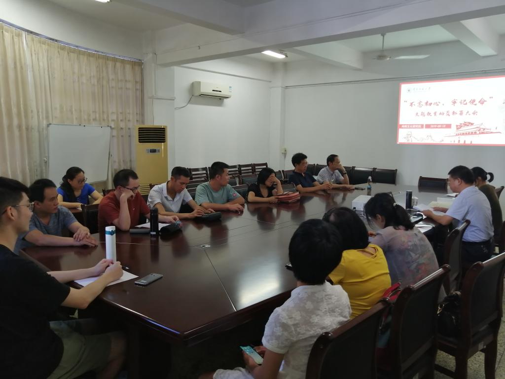 9月19日下午,闽南文化研究院在综合楼中区109召开“不忘初心,牢记使命”主题教育强化动员部署暨专题学习会。会议由副院长、党支部书记刘云主持,全体教职工、全体党员参加了会议。