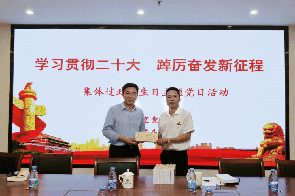 4月20日下午,办公室党支部在科信楼15楼会议室开展“学习贯彻二十大 踔厉奋发新征程”集体过政治生日主题党日活动,校党委书记吴彬镪以普通党员身份参加活动。