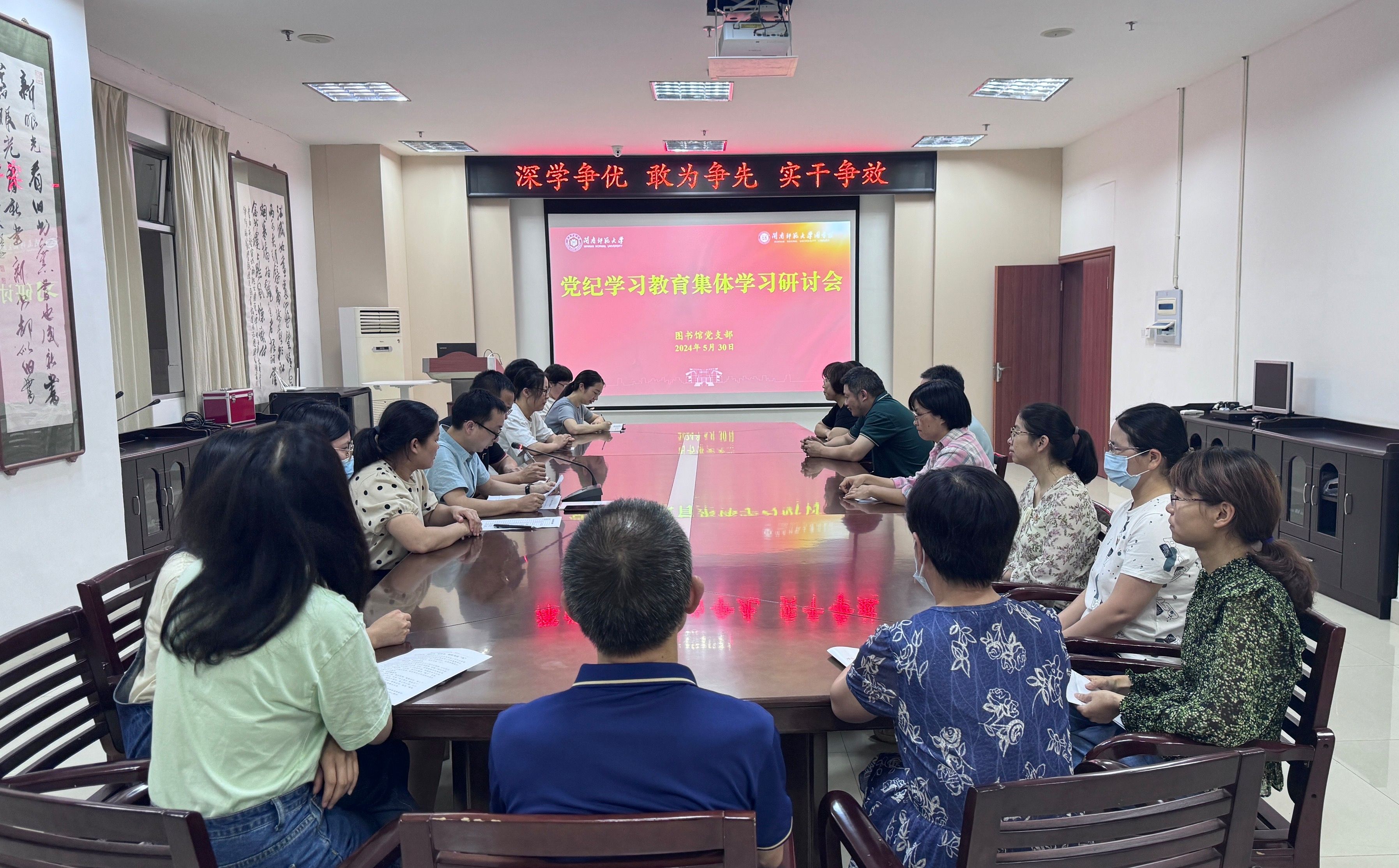 为深入学习贯彻习近平总书记关于党纪学习教育的重要讲话和重要指示精神,5月30日下午,图书馆党支部召开党纪学习教育集体学习研讨会。校党委常委、副校长何绍福以普通党员身份提交书面交流材料。会议由党支部副书记江亚主持。