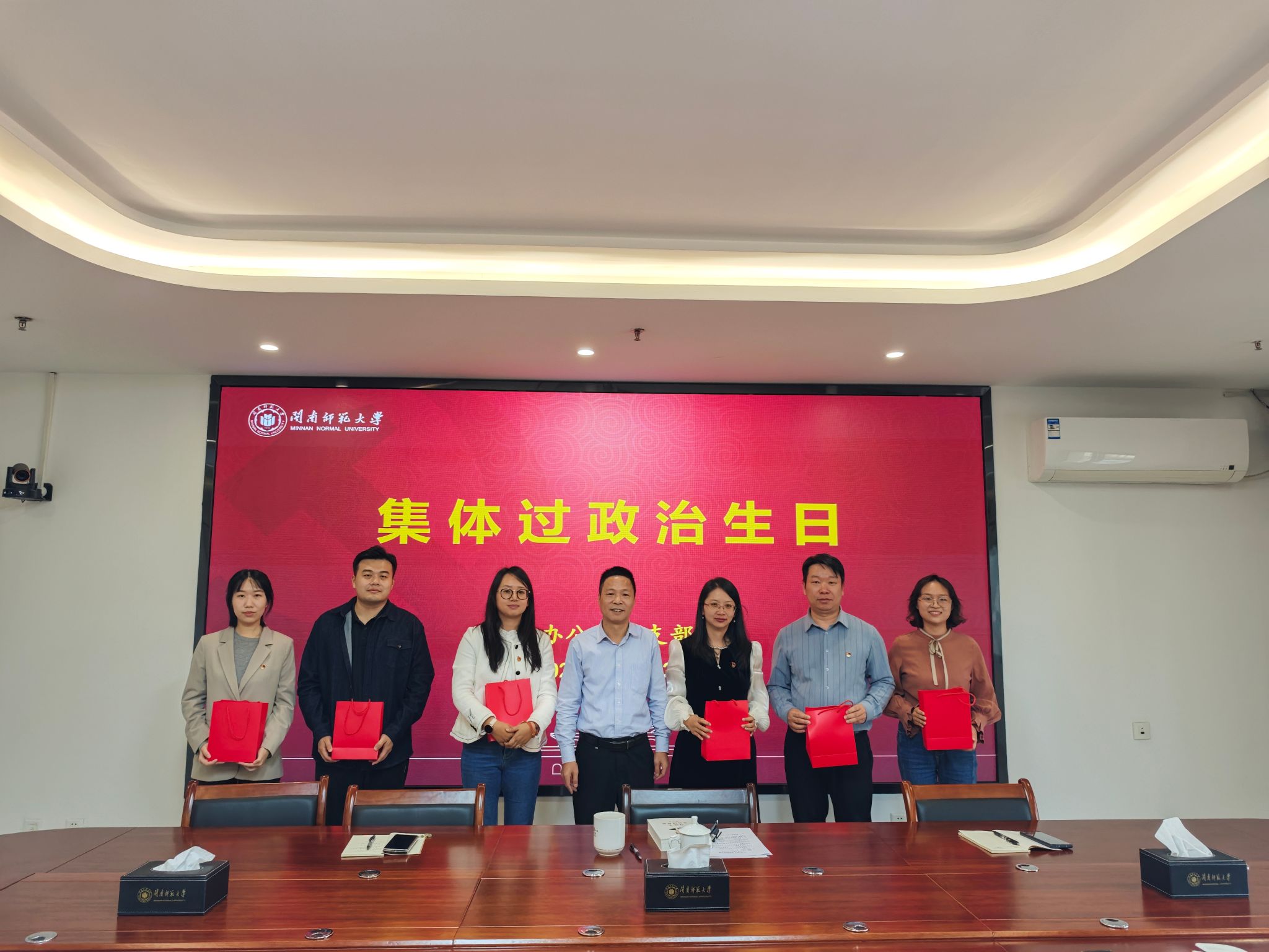 会议传达学习了党的二十届四中全会精神,习近平总书记给福建农林大学、天津大学全体师生的重要回信精神,习近平总书记对全面依法治国工作作出的重要指示以及在纪念胡耀邦同志诞辰 110 周年座谈会上的重要讲话精神,并开展了《习近平谈治国理政》“第五卷”专题学习。会上,党支部为7-12月入党的党员同志集体过政治生日,罗炎成代表党支部赠送政治生日礼物。党员代表朱俐玮发表政治生日感言,分享了入党以来的成长与感悟。